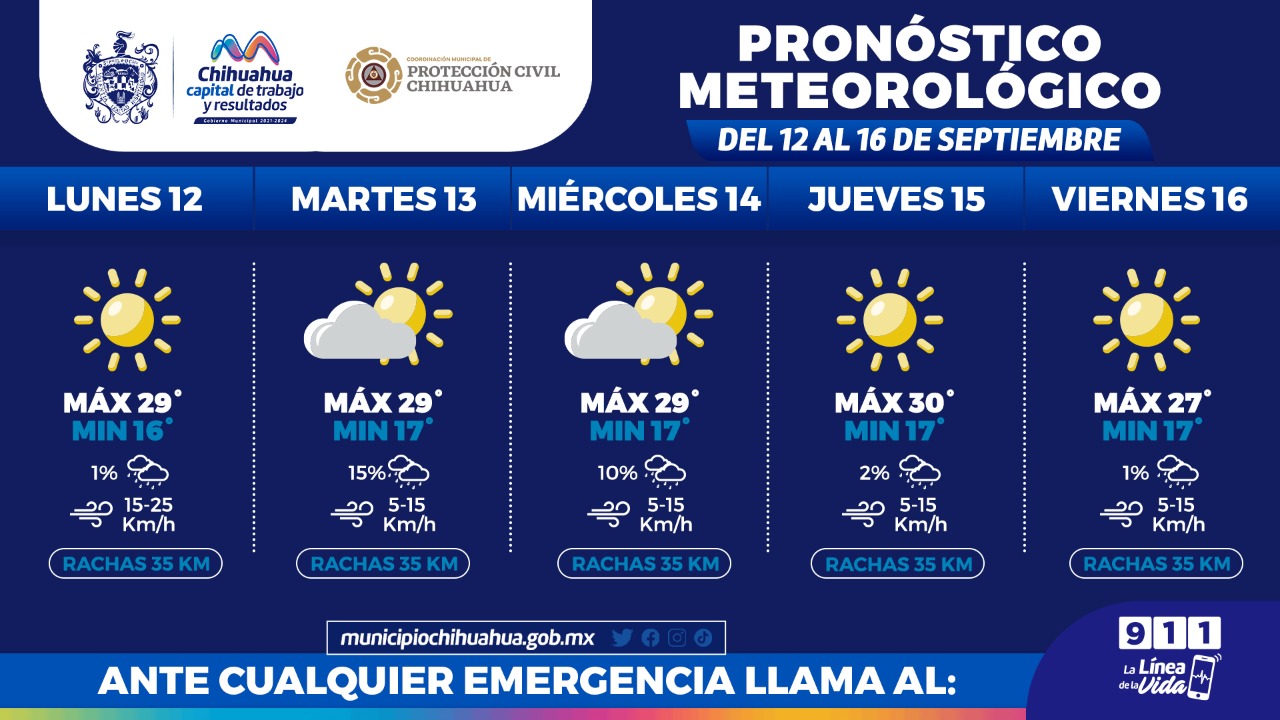 La Coordinación Municipal de Protección Civil informa a la ciudadanía que esta semana se esperan máximas de hasta 30°C para la capital del estado, por lo que invitan a atender las recomendaciones por calor.