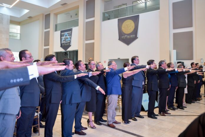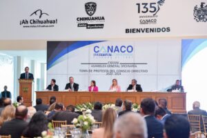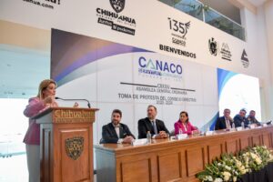 La ceremonia se efectuó en el edificio del organismo empresarial, donde la gobernadora Maru Campos enfatizó que Chihuahua, “es un bastión de prosperidad económica que no solo resiste los retos externos, sino que los usa para mostrar cómo sí hacer política de atracción, y como nunca las coyunturas internacionales nos ponen en una posición de ventaja competitiva ante los ojos de los grandes inversionistas del mundo”.