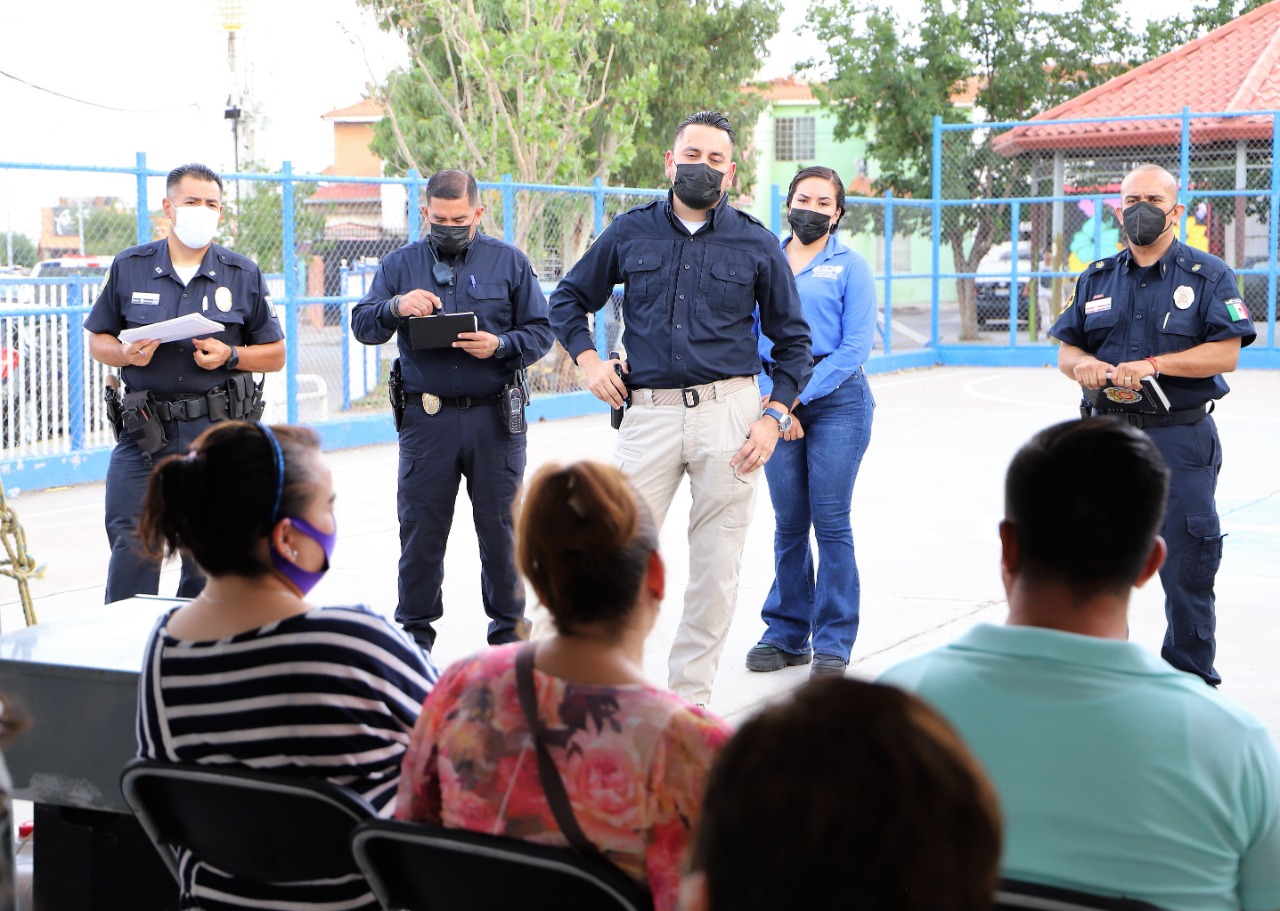 En la reunión vecinal que se llevó a cabo por la tarde en el parque ubicado en el centro comunitario que pertenece al DIF Municipal, en las calles Fernando Mayo y N. 14901, mandos policiales y personal de las diversas áreas de la Dirección de Seguridad Pública Municipal (DSPM), platicaron con los vecinos y atendieron 43 solicitudes, la mayoría de ellas haciendo hincapié en la necesidad de incremento de patrullajes, atención y prevención en ciertas faltas administrativas y delitos, entre otros.