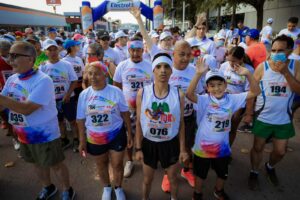 A temprana hora el Presidente Municipal, acompañado de su esposa Karina Olivas y sus hijos Marco, Pablo y Mateo se unieron a esta carrera recreativa que tuvo como finalidad, unir a las familias de la capital en un evento donde no importó si corrían, trotaban o caminaban, porque el fin era pasar un domingo donde papá, mamá, hijas, hijos, abuelos disfrutaran de la mañana.