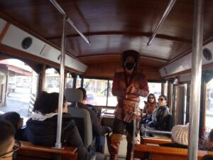 Visitaron importantes lugares de la ciudad como: Plaza de armas, palacio de gobierno, casa Chihuahua, Quinta Gameros, parque Lerdo, entre otros espacios, donde los alumnos tuvieron oportunidad de observar, conversar con los personajes y resolver sus inquietudes sobre la historia de Chihuahua.