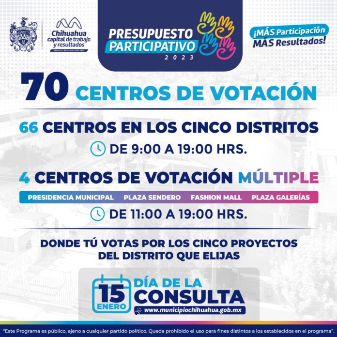 Como parte de las acciones para involucrar a la ciudadanía en la toma de decisiones públicas, el Gobierno Municipal, a través de Dirección de Desarrollo Humano y Educación, invita a niñas, niños, jóvenes y adultos a participar en la consulta ciudadana del Presupuesto Participativo 2023, que se llevará a cabo el próximo domingo 15 de enero.