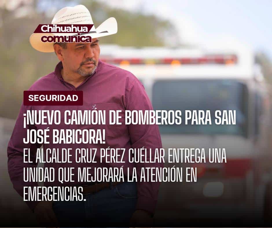 Pérez Cuéllar no acudió con las manos vacías, fue a llevar una bombera para que apaguen los incendios que en esa región, cuando se presentan, son ocasionados en los enfrentamientos entre bandas del crimen organizado y rara vez por otras causas. Como siempre, el aparato de Comunicación Social del Municipio ocultó el donativo que fue entregado durante un rodeo de rancho realizado por el 71 aniversario de las Fiestas de la repartición del latifundio de la exhacienda de San José Babícora, a las que acudió aparentemente invitado por la alcaldesa de ese municipio, María de los Ángeles Moreno, a quien ya anteriormente le había llevado una ambulancia de rescate municipal de los juarenses.