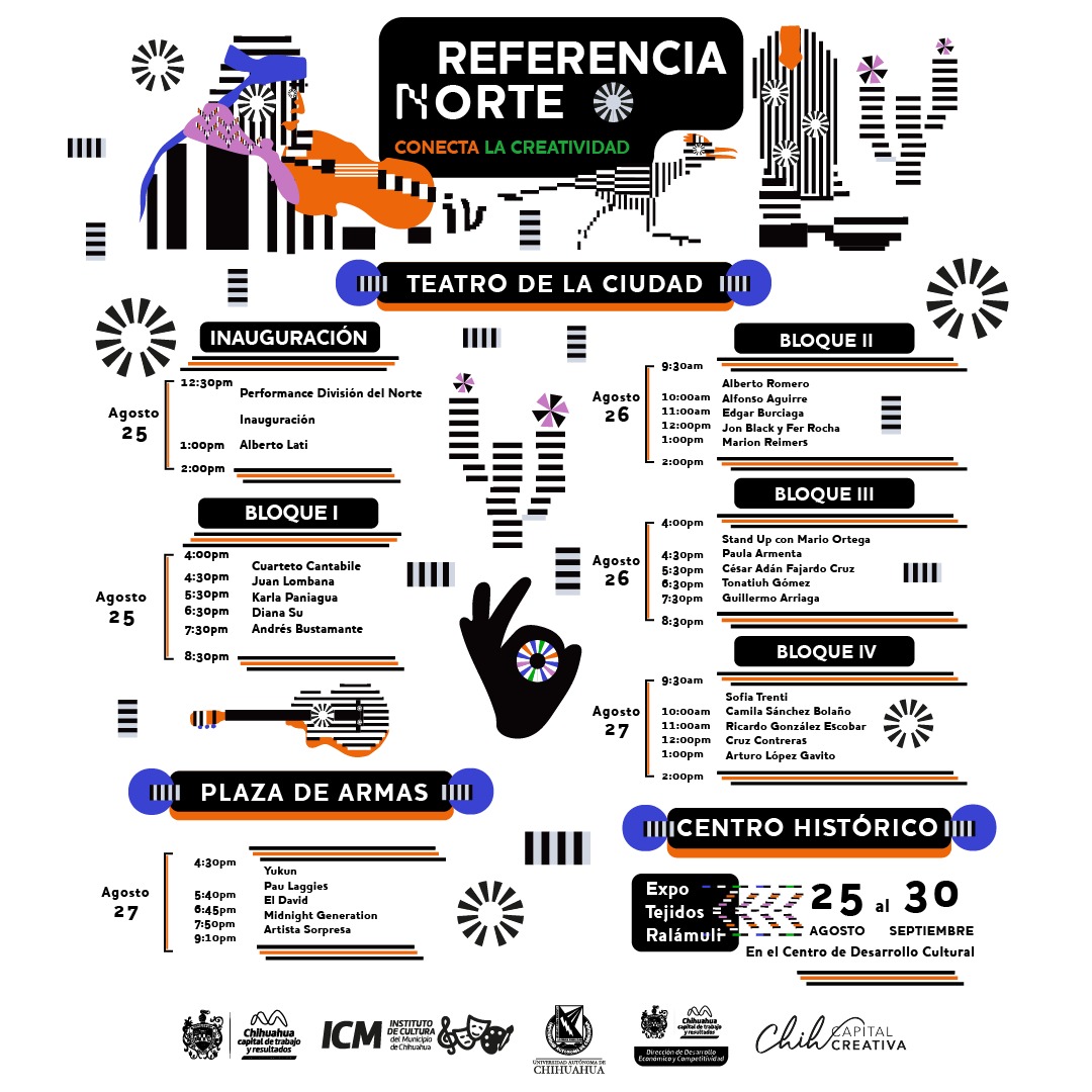 El Instituto de Cultura del Municipio (ICM), invita a la comunidad chihuahuense a inscribirse y apartar su lugar en las conferencias de “Referencia Norte”, evento que tendrá pláticas de emprendimiento cultural y creatividad, las cuales se desarrollarán en el Teatro de la Ciudad del 25 al 27 de agosto.