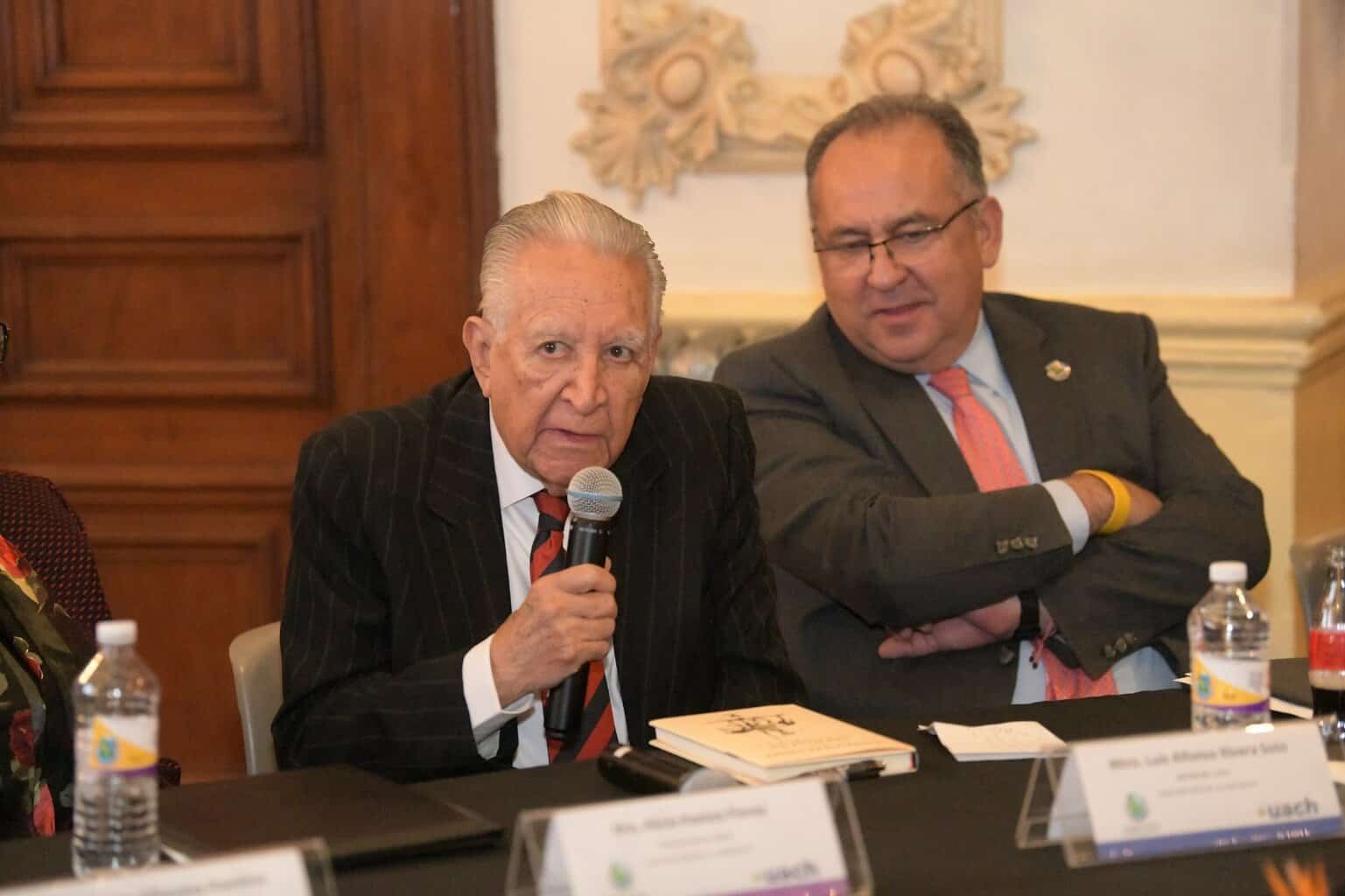 Asimismo, el Mtro. Luis Alfonso Rivera Campos, rector de la UACH, compartió un mensaje en el que subrayó la importancia de preservar las experiencias profesionales como parte del patrimonio intelectual y humano de la comunidad jurídica.